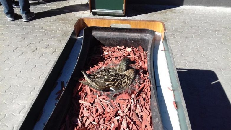 У этого Макдональдса есть утка, которая свила гнездо на входе