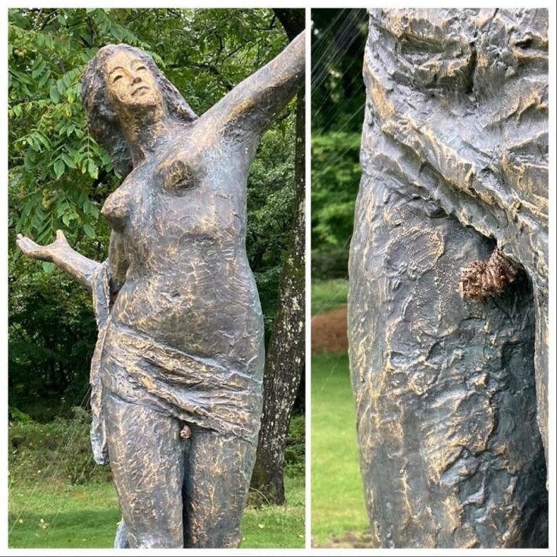Осиное гнездо выглядит так, как будто статуя надела тюрбан