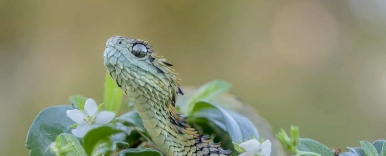 Глаза этой гадюки могут быть разного цвета. Голубоглазые особи встречаются в Демократической Республике Конго. Оттенок может варьироваться от бледно-голубого до яркого бирюзового.