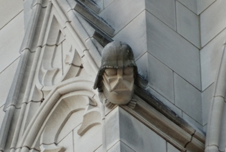 Вашингтонский национальный собор, шестой по величине в мире, ежегодно привлекает полмиллиона посетителей. Для самых внимательных среди шпилей северо-западной башни притаился официально утверждённый гротеск с узнаваемым профилем Дарта Вейдера, злодея из «Звёздных войн». Это ироничный подарок современной поп-культуры неоготическому гиганту.