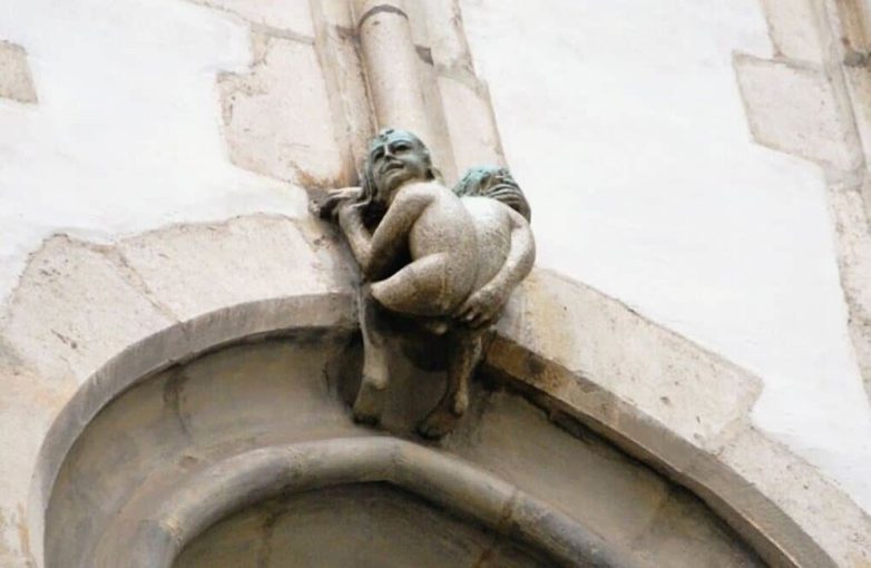 На южном окне церкви Святого Якова в чешском Брно среди готического убранства затерялась странная фигурка: двуликий человечек, нагло демонстрирующий миру свои обнажённые полупопия. Легенды связывают его с соперничеством церквей: шпиль Святого Якова оказался на десять метров выше соседнего собора, и эта скульптура стала последним словом победителя. Однако историки считают, что это просто причудливый, но не уникальный для готики элемент декора.