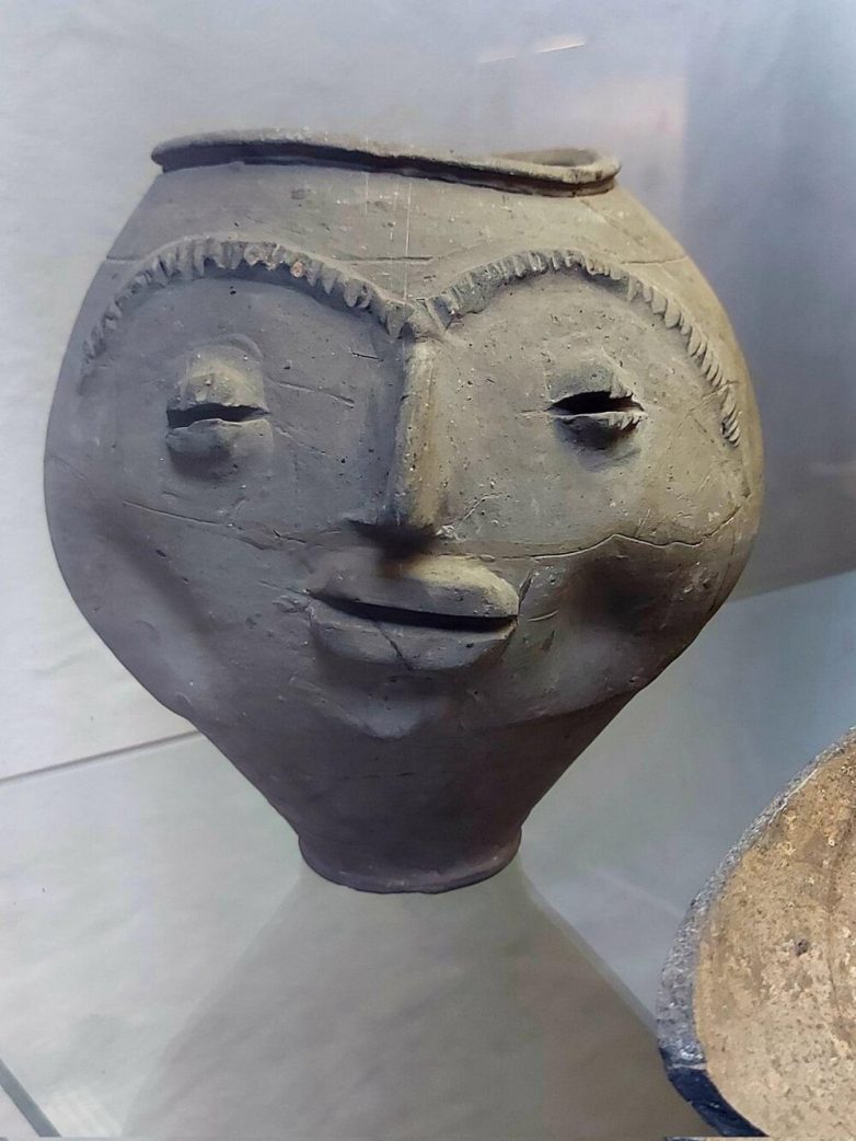 Найден на территории бывшего римского поселения Нида (современный район Франкфурта-на-Майне — Хеддернхайм, западная Германия). Это, вероятно, римский керамический сосуд типа «лицевая урна» (face-urns) или «маска-ваза» (mask-vase), которые производились в германских провинциях Римской империи. Такие сосуды часто использовались в погребальных обрядах для хранения праха или как ритуальные подношения.