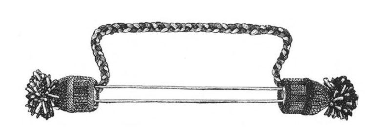 Чехлы для спиц. Резинка должна быть достаточно короткой, чтобы колпачки сидели плотно. Они предотвращают соскальзывание петель и удерживают спицы вместе в корзине для рукоделия. Их иногда называют колпачками Пунчинелло в честь итальянского клоуна Пульчинеллы (Pulcinello) — персонажа итальянского кукольного театра XVII века.