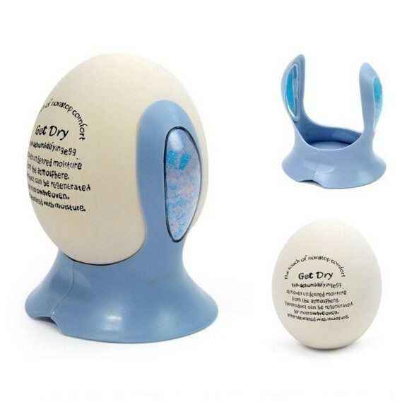 Влагопоглощающее яйцо — осушитель воздуха. Гаджет создан, чтобы дарить вещам и помещениям свежесть. Яйцо нужно положить в ящик комода, на полку с обувью или в угол гардеробной, и оно начнёт незаметно впитывать излишнюю влагу, которая является причиной появления неприятных запахов, ржавчины и грибка.