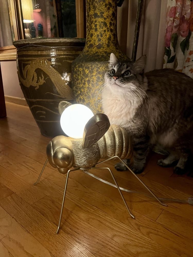 10. «Прошедшая неделя выдалась для меня очень удачной в магазинах подержанных вещей. Сегодня вечером нашла большую золотую лампу в виде пчелы»