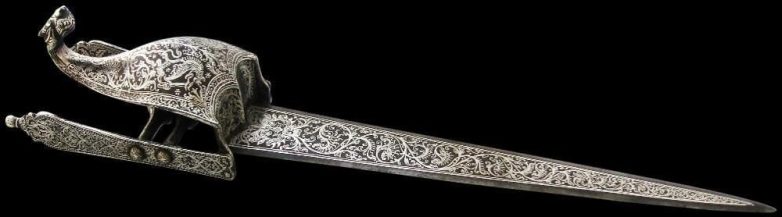 12. Катар — кинжал с танжорской металлической инкрустацией. Южная Индия, 1650 год