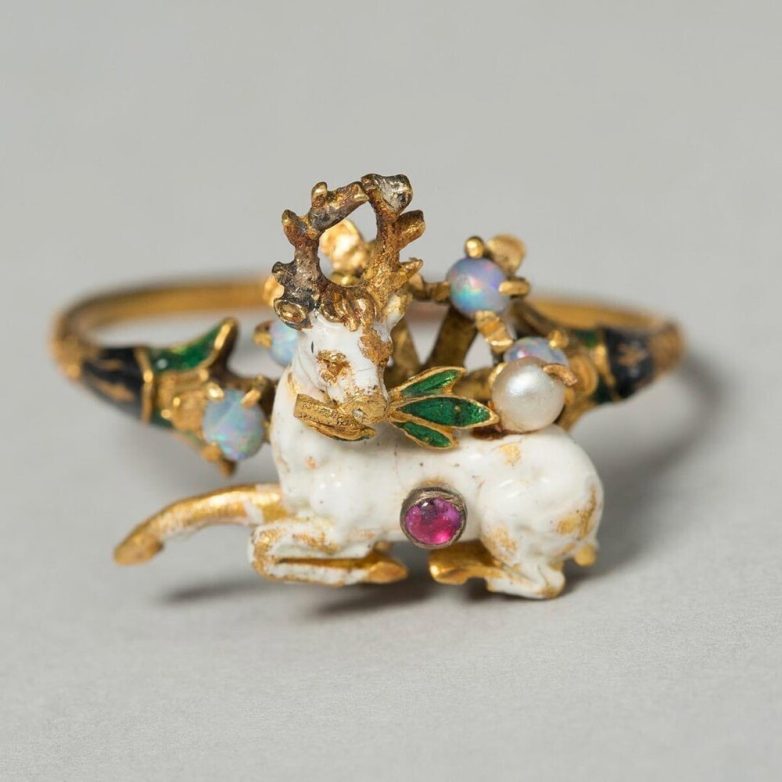 17. Золотое кольцо с оленем с ветвью. Германия, около 1550–1600 гг. н.э.