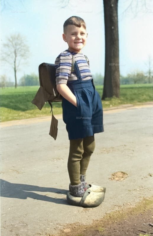 0 Нидерландский школьник в кломпах на толстый шерстяной носок, середина XX века.