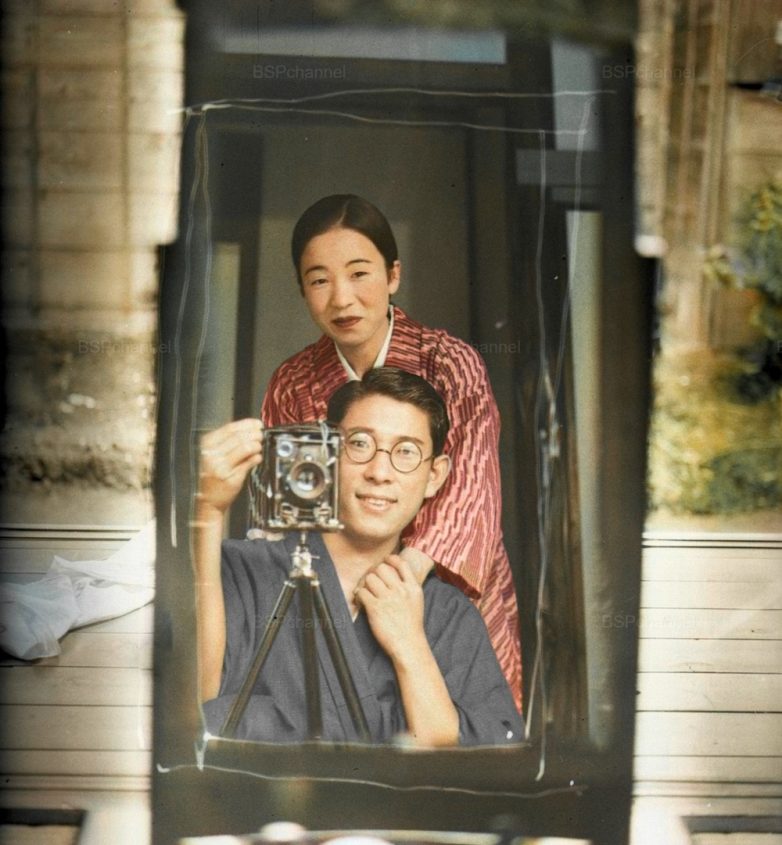 Японская пара фотографируется вместе, 1920 год.