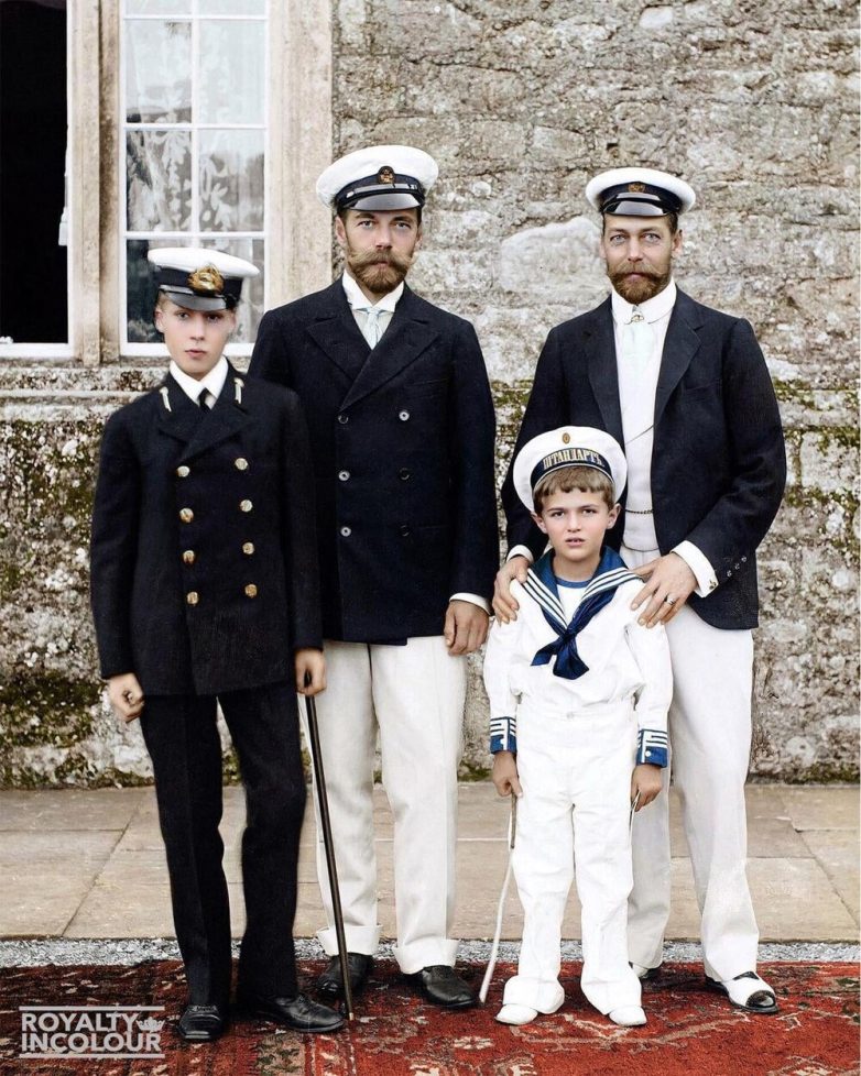 Император Николай II своим двоюродным братом, принцем Георгом (будущим королём Великобритании Георгом V), и их наследниками