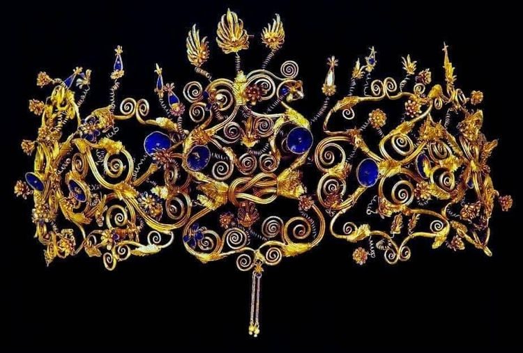 4. Золотая диадема скифской принцессы Меды, найденная в гробнице Филиппа II Македонского. Эгей, Македония, Греция. IV век до н.э.