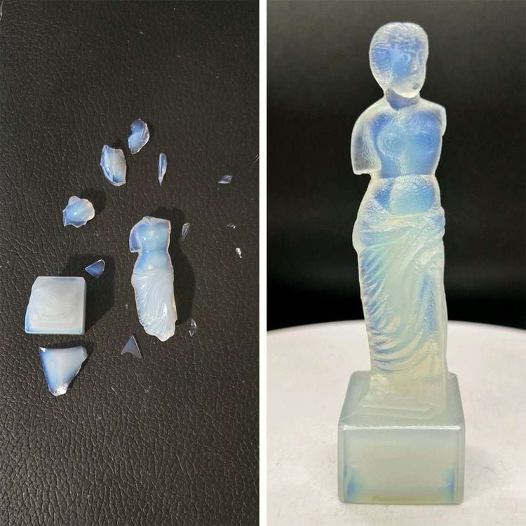 «Это была крошечная статуэтка Венеры Милосской от Sabino Glass. Попробую склеить то, что смогу, но я очень расстроена. Знаю, что могу купить новую на eBay примерно за 75 долларов, но сентиментальность берет верх», — написала автор фото.