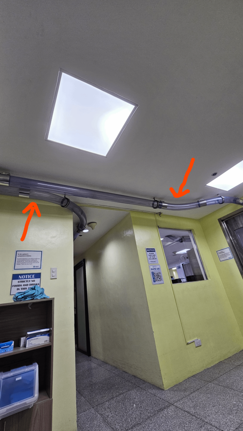 Пневматическая система транспортировки по трубам. Помещаете небольшой контейнер в один конец трубы, и давление воздуха выталкивает его в другой. Раньше это было очень распространено в банковских кассах. До сих пор используется в американских больницах. Отлично подходит для отправки образцов в лабораторию, получения лекарств в аптеке.