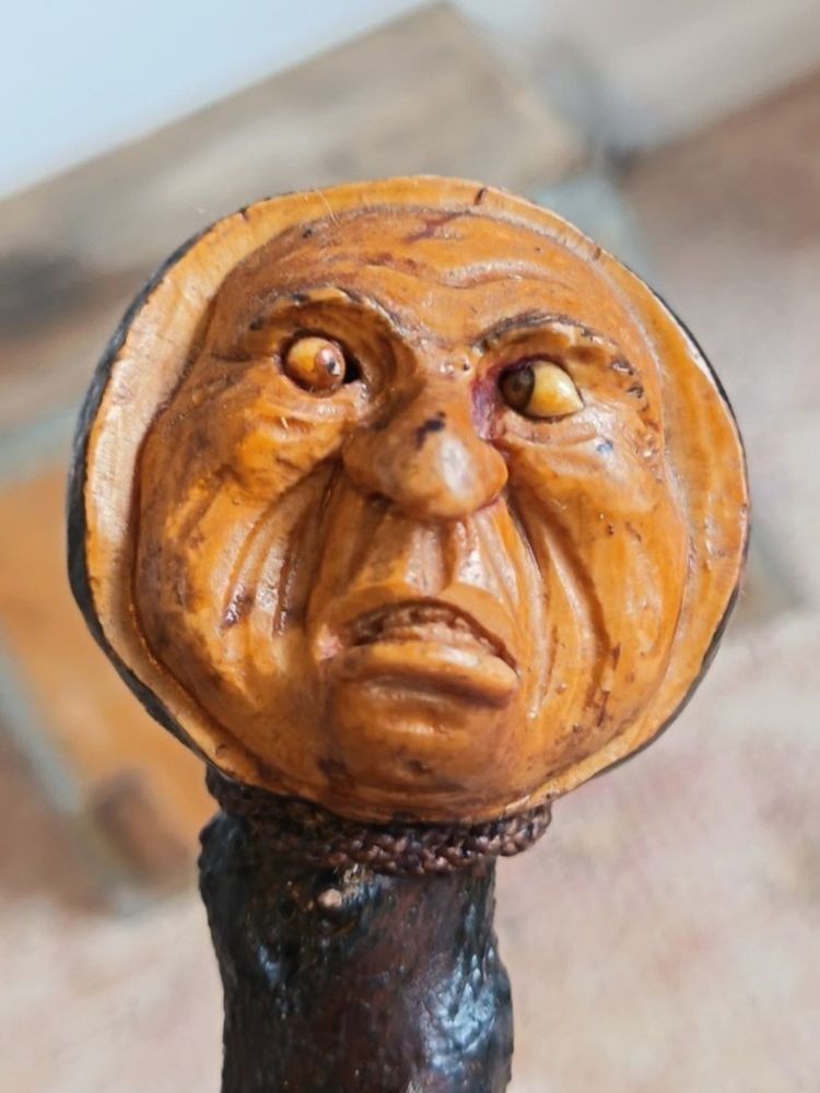 4. Трость, дерево, резьба по скорлупе ореха coquilla (пальма Attalea funifera) или же ореха тагуа (пальмы рода Phytelephas). Европа, 2-я пол. XIX — начало XX века