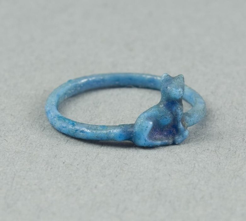 9. Кольцо с кошкой из фаянса, датируемое Новым царством Египта, 18-я династия, около 1390 года до н.э.
