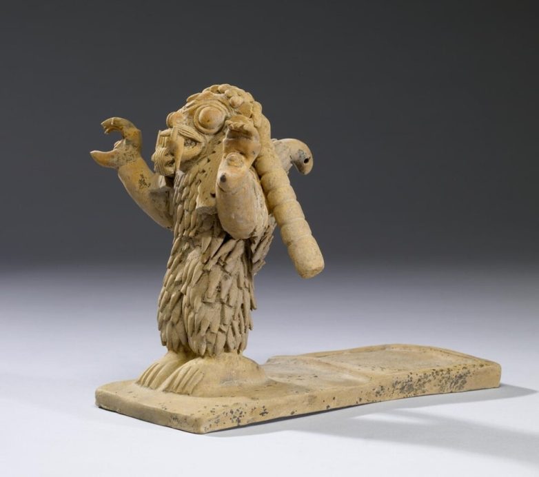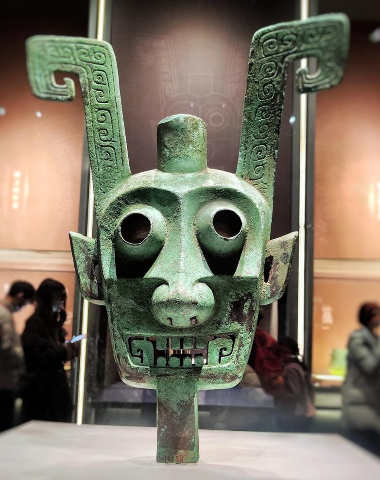 Этот идол в виде человека-зверя когда-то был увенчан перьями и использовался как ритуальный скипетр для общения с божеством. Китай, около 1200 г. до н. э.