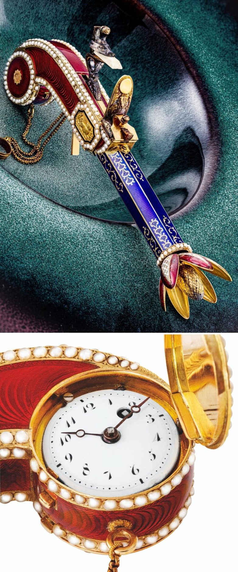 13. Кремневый распылитель для духов в форме пистолета, украшенный золотом, эмалью и жемчугом, со скрытыми часами, изготовленный в Женеве в 1805 году