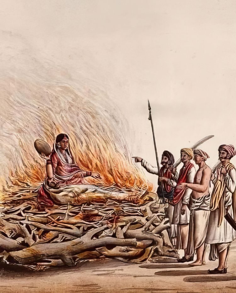 Обряд сати заключался в том, что вдова сжигала себя на погребальном костре мужа.