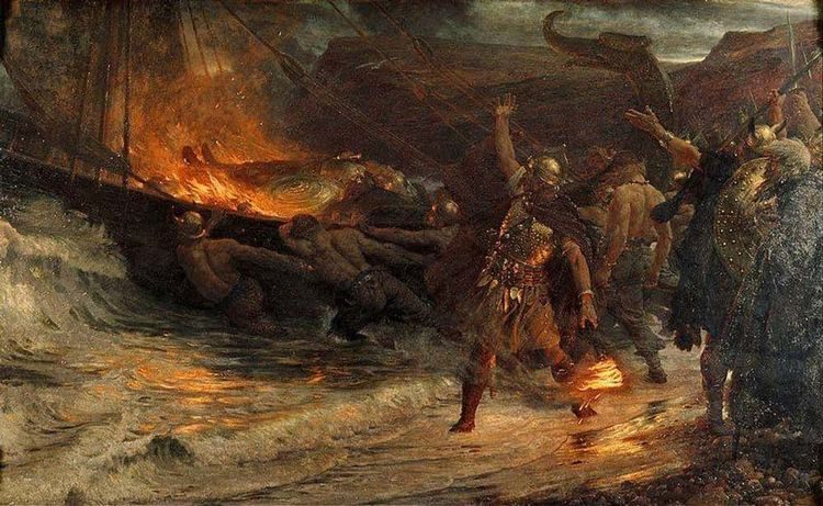 Похороны викингов могли быть настоящим спектаклем. Тело знатного человека помещали в лодку вместе с оружием, украшениями, едой и животными.