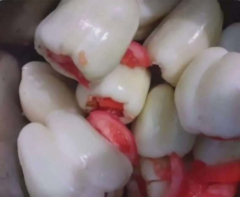 9. Штуки, которые выглядят как зубы, фаршированные томатами