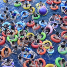 16 и 17 июля в самом большом крытом бассейне Китая «Мёртвое море», расположенном в провинции Сычуань, было особенно людно. Тысячи людей резвились в соленой воде в разноцветных надувных кругах, а, по словам руководства аквапарка, и вовсе был установлен рекорд посещаемости — 10 000 человек.